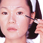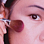 hide dark circles. Then lighly spread powder finish formula foundation all over the face, blending into neckline.